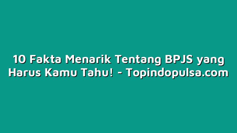 Topindopulsa.com, Singkawang – Sobat Topindoku, apakah kamu sudah tahu tentang fakta menarik terkait BPJS? Yang satu ini memang sering jadi perdebatan di masyarakat, tapi sebenernya ada banyak hal yang penting untuk kamu ketahui. Yuk, simak artikel berikut ini untuk informasi lengkapnya! Jangan sampai kelewatan, bacalah sampai akhir ya!