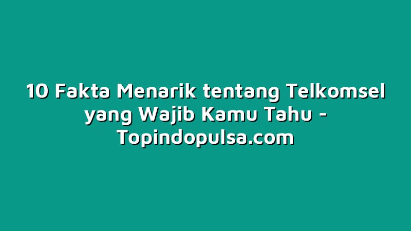 Nah, itulah 10 fakta menarik seputar Telkomsel yang wajib kamu tahu, Sobat Topindoku! Udah pada tahu kan sekarang? Jadi, jangan lupa terus dukung Telkomsel ya, dan nikmati semua keuntungannya. Sampai jumpa di artikel selanjutnya!