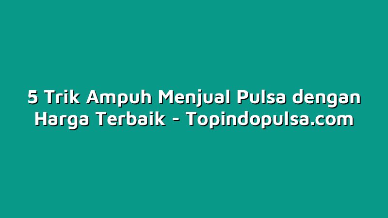 Topindopulsa.com, Singkawang – Halo Sobat Topindoku! Apa kabar? Sudah punya trik jitu dalam menjual pulsa dengan harga terbaik? Jika belum, jangan khawatir karena kali ini kami akan membagikan 5 trik ampuh yang bisa kamu terapkan dalam bisnis pulsa kamu. Yuk, baca sampai akhir dan dapatkan penjualan pulsa yang semakin meningkat!