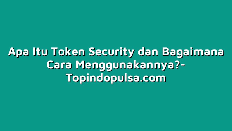Apa Itu Token Security dan Bagaimana Cara Menggunakannya?
