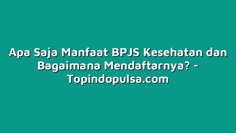 Topindopulsa.com, Singkawang – Hai Sobat Topindoku! Kali ini kita akan bahas tentang manfaat dari BPJS Kesehatan. Pasti sering dengar kan tentang BPJS Kesehatan, tapi mungkin belum tahu benar apa saja manfaatnya. Nah, kali ini kita akan bahas detail tentang manfaatnya dan juga cara mendaftar BPJS Kesehatan. Yuk, simak artikel ini sampai habis supaya nggak ketinggalan info pentingnya!
