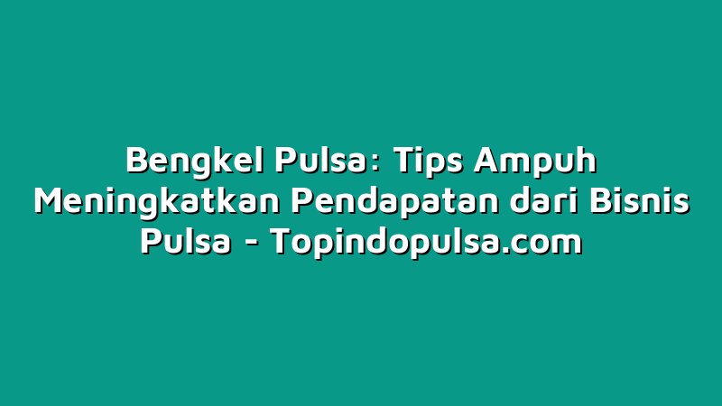 Bengkel Pulsa: Tips Ampuh Meningkatkan Pendapatan dari Bisnis Pulsa