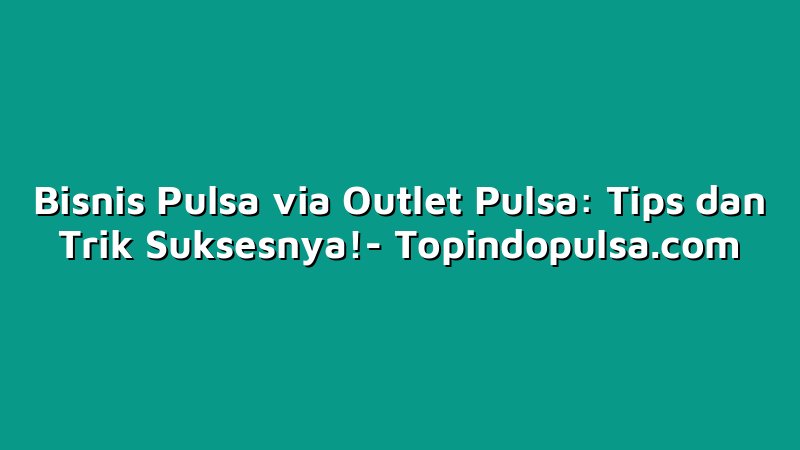 Bisnis Pulsa via Outlet Pulsa: Tips dan Trik Suksesnya!