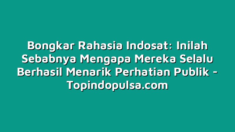 Indosat Ooredoo, operator telekomunikasi terbesar ketiga di Indonesia, selalu berhasil menarik perhatian publik dengan berbagai inovasi yang mereka lakukan. Tidak hanya itu, Indosat juga terus meningkatkan kualitas layanan mereka, mulai dari jaringan hingga customer service. Sebagai pelanggan setia Indosat, saya penasaran dengan rahasia di balik kesuksesan mereka. Apa yang membuat Indosat selalu berhasil menarik perhatian publik? Berikut ini adalah bongkar rahasia Indosat yang berhasil saya temukan: