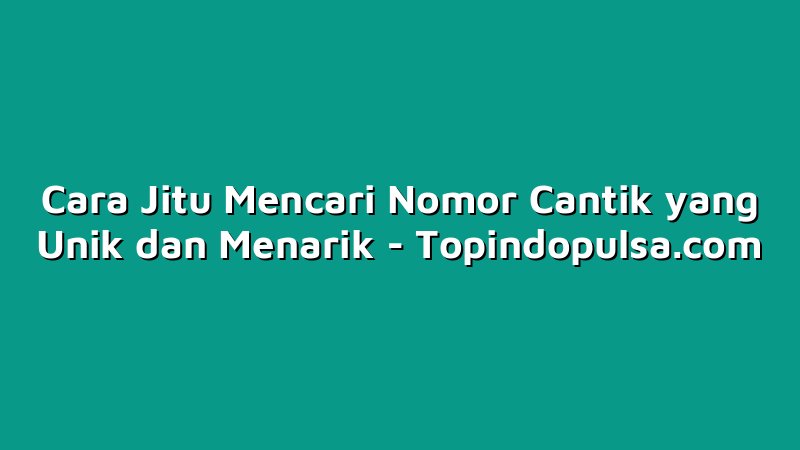 Tidak dapat dipungkiri bahwa nomor cantik kini telah menjadi tren di kalangan masyarakat Indonesia. Banyak dari mereka yang rela mengeluarkan uang besar hanya untuk mendapatkan nomor cantik yang unik dan menarik. Namun, mencari nomor cantik yang sesuai dengan selera bukanlah hal yang mudah. Berikut ini adalah beberapa tips cara jitu untuk mencari nomor cantik yang unik dan menarik.