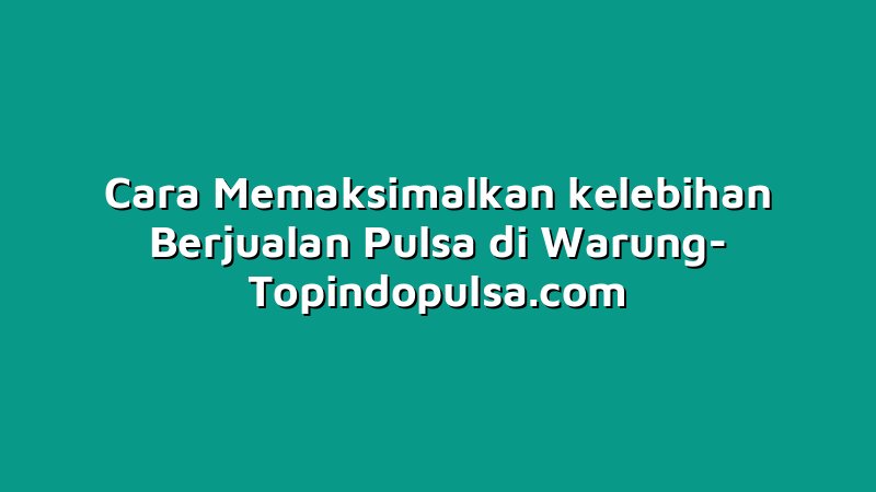 Berjualan Pulsa di warung merupakan salah satu cara yang banyak digunakan untuk mendapatkan kelebihan. Namun, untuk memaksimalkan kelebihan yang didapatkan, Anda harus memahami cara berjualan Pulsa di warung dengan benar. Berikut adalah beberapa tips yang dapat Anda gunakan untuk memaksimalkan kelebihan berjualan Pulsa di warung.