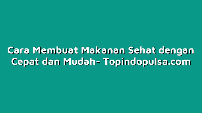 Cara Membuat Makanan Sehat dengan Cepat dan Mudah
