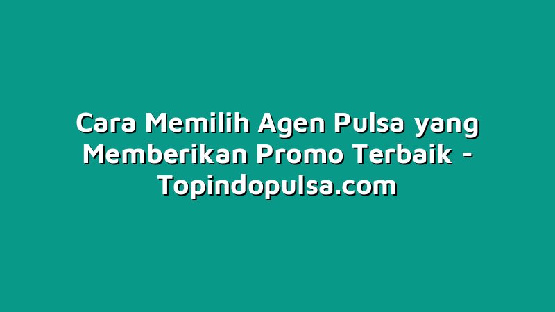 Memilih agen pulsa yang memberikan promo terbaik memerlukan kehati-hatian dan pemilihan yang tepat. Pastikan untuk memperhatikan faktor-faktor seperti reputasi, harga pulsa dan promo, ketersediaan produk, sistem transaksi, layanan pelanggan, dan legalitas agen pulsa. Dengan memilih agen pulsa yang terpercaya dan memberikan kemudahan dalam berbisnis, Anda dapat meningkatkan peluang sukses dalam bisnis pulsa.