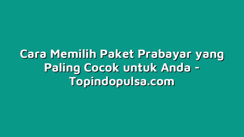 Cara Memilih Paket Prabayar yang Paling Cocok untuk Anda