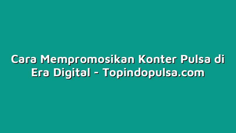 Dalam era digital seperti saat ini, banyak sekali bisnis dan usaha yang mulai beralih ke ranah online. Hal ini dilakukan untuk mengikuti perkembangan teknologi yang semakin pesat. Salah satu bisnis yang bisa dijalankan secara online adalah konter pulsa. Konter pulsa merupakan bisnis yang cukup menjanjikan di era digital saat ini. Namun, untuk mengembangkan bisnis tersebut tentunya perlu dilakukan promosi secara tepat.