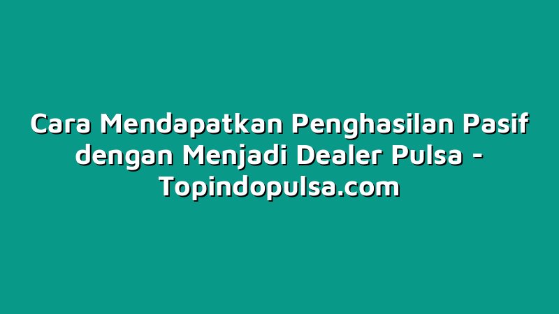 Topindopulsa.com, Singkawang – Halo Sobat Topindoku! Kamu sedang mencari cara untuk mendapatkan penghasilan pasif? Jangan khawatir, karena kali ini kita akan membahas tentang bagaimana cara mendapatkan penghasilan pasif dengan menjadi dealer pulsa. Yuk, simak artikel ini sampai akhir agar kamu bisa memulai usaha sampingan yang menguntungkan ini!
