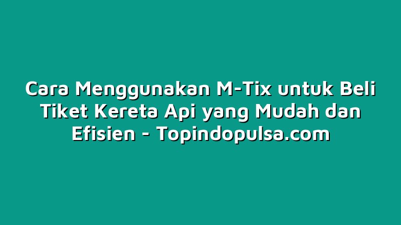 Topindopulsa.com, Singkawang – Halo Sobat Topindoku! Berbicara tentang perjalanan kereta api, pastinya tidak asing lagi dengan M-Tix sebagai salah satu cara untuk membeli tiket secara online. Namun, apakah Sobat Topindoku sudah mengerti cara menggunakan M-Tix secara mudah dan efisien? Jangan khawatir, karena dalam artikel ini akan dijelaskan langkah-langkahnya secara lengkap. Yuk, simak sampai akhir!