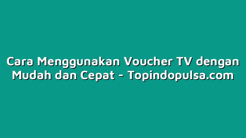 Topindopulsa.com, Singkawang – Halo Sobat Topindoku! Bagaimana kabarnya hari ini? Kali ini kita akan bahas tentang cara menggunakan voucher TV dengan mudah dan cepat. Dalam era digital seperti sekarang ini, voucher TV menjadi salah satu alternatif yang sangat praktis untuk menikmati program televisi favorit kita. Nah, untuk lebih lengkapnya, yuk kita simak artikel ini sampai selesai ya!