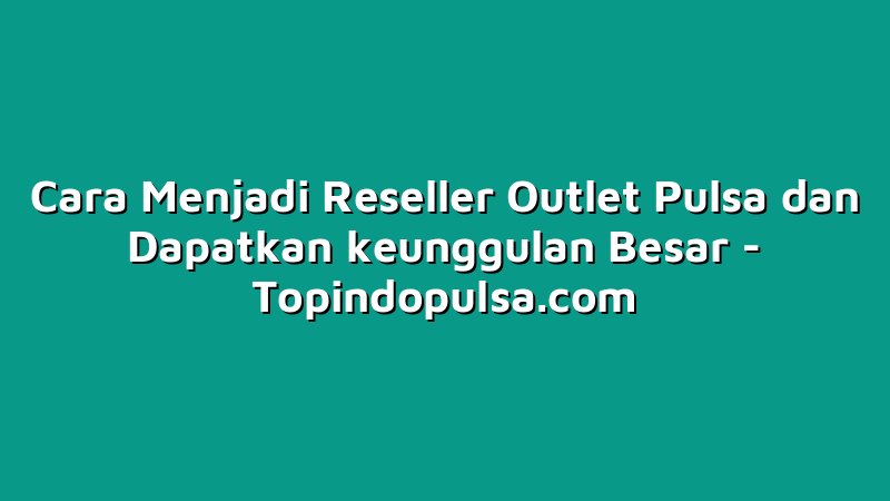 Topindopulsa.com, Singkawang – Hai Sobat Topindoku! Bagaimana kabarnya hari ini? Semoga selalu sehat dan bahagia ya. Kali ini, kami ingin berbagi informasi tentang Cara Menjadi Reseller Outlet Pulsa dan mendapatkan keunggulan besar. Jangan langsung tutup artikel ini ya, karena informasi yang kami berikan bisa jadi peluang bisnis yang menjanjikan bagi Sobat Topindoku. Yuk, simak sampai akhir artikel ini untuk mendapatkan peluang bisnis yang menarik!