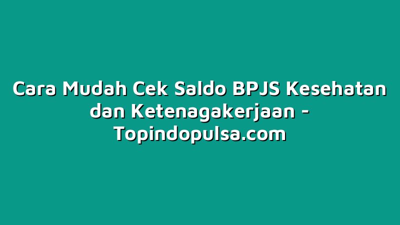 Topindopulsa.com, Singkawang – Hai Sobat Topindoku! Kamu pasti sudah tidak asing lagi dengan BPJS Kesehatan dan Ketenagakerjaan, ya kan? Nah, kali ini kita akan membahas tentang cara mudah cek saldo dari kedua BPJS tersebut. Gimana? Penasaran kan? Yuk, simak artikel ini sampai habis!