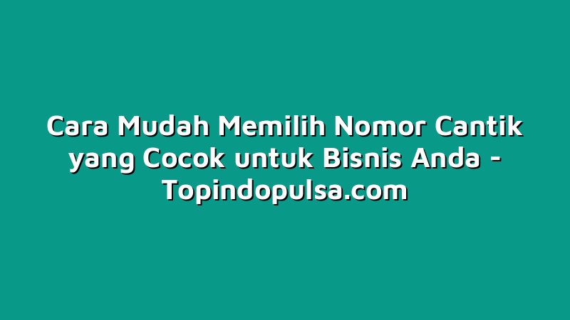 Topindopulsa.com, Singkawang – Hai Sobat Topindoku! Kamu mungkin sedang bingung mencari nomor cantik yang cocok untuk bisnismu, ya? Tenang saja, karena di artikel ini kita akan membahas cara mudah memilih nomor cantik yang sesuai dengan kebutuhan bisnismu. Yuk, simak sampai habis!