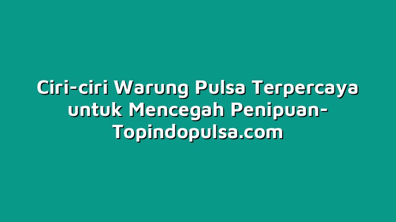 Warung pulsa merupakan layanan penting bagi masyarakat untuk terhubung dengan keluarga dan teman-teman. Warung pulsa juga dapat menjadi sumber penghasilan bagi orang-orang yang menjalankannya. Namun, dengan munculnya banyak warung pulsa ilegal dan penipuan yang terjadi, menjadi penting untuk mengetahui ciri-ciri warung pulsa terpercaya untuk mencegah penipuan.