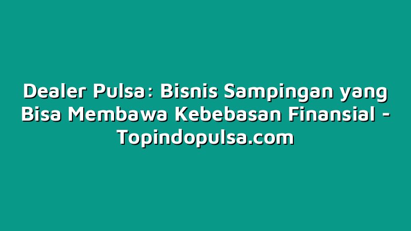 Bisnis dealer pulsa bisa membawa kebebasan finansial karena kamu bisa mengatur sendiri penghasilan kamu. Semakin banyak kamu menjual pulsa, semakin besar penghasilan yang kamu dapatkan. Kamu juga bisa mengembangkan bisnis kamu dengan cara merekrut agen atau reseller pulsa.