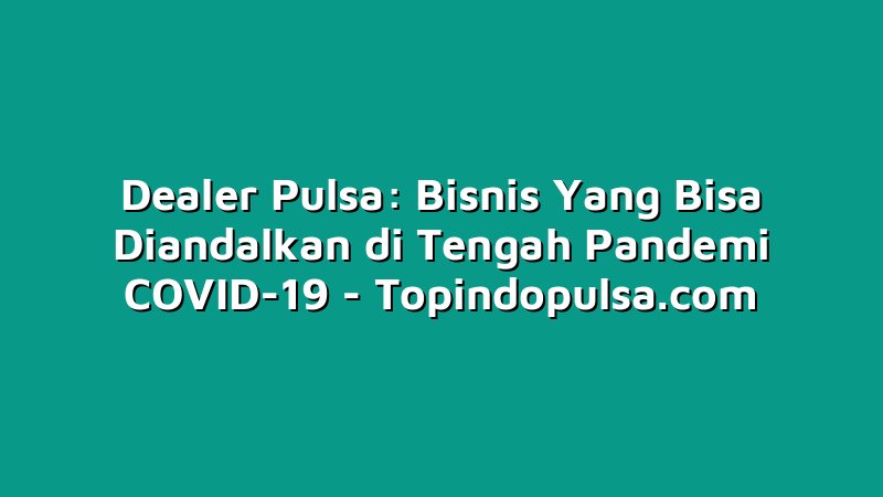 Pandemi COVID-19 telah mengubah banyak aspek kehidupan manusia, termasuk dalam hal ekonomi. Banyak orang kehilangan pekerjaan dan mencari cara baru untuk menghasilkan uang. Salah satu bisnis yang ternyata cukup menjanjikan di tengah pandemi ini adalah bisnis dealer pulsa.