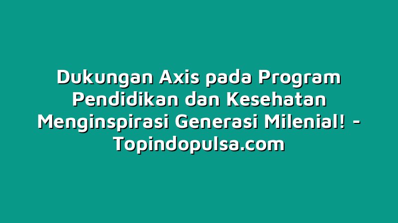 Dukungan Axis pada program pendidikan dan kesehatan sangatlah penting dalam membangun masa depan bangsa. Generasi milenial sebagai penerus bangsa perlu mendapatkan dukungan yang memadai agar mereka dapat berkembang dan berkontribusi lebih baik pada masyarakat dan negara. Dukungan Axis pada program pendidikan dan kesehatan menginspirasi generasi milenial untuk terus berjuang dan berkarya. Mari kita dukung program pendidikan dan kesehatan untuk generasi milenial demi masa depan bangsa yang lebih baik.