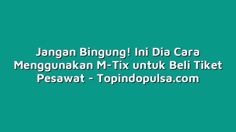 Topindopulsa.com, Singkawang – Halo Sobat Topindoku, apakah kamu sering merasa bingung ketika ingin membeli tiket pesawat menggunakan M-Tix? Jangan khawatir, karena kali ini kami akan memberikan panduan lengkap untuk kamu. Yuk, simak cara menggunakan M-Tix untuk beli tiket pesawat sampai selesai!