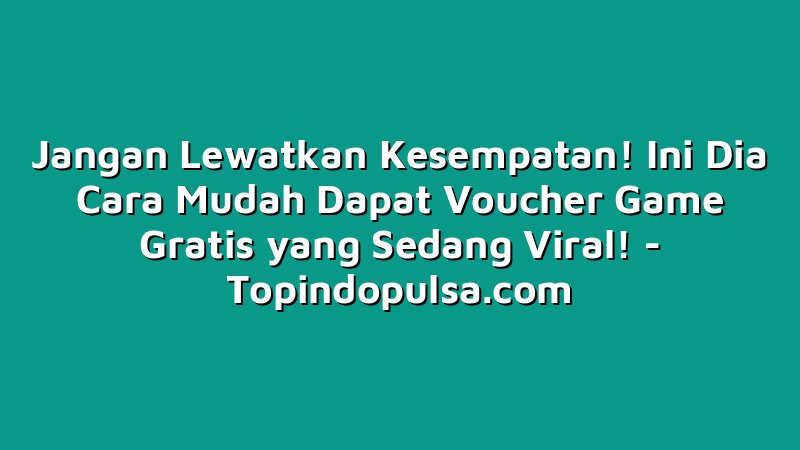 Topindopulsa.com, Singkawang – Hai, Sobat Topindoku! Ada kabar seru nih buat kalian semua! Jangan lewatkan kesempatan emas ini, karena kita punya cara super mudah untuk dapetin voucher game gratis yang lagi viral! Penasaran kan? Yuk, simak artikel ini sampai akhir supaya nggak ketinggalan info pentingnya! So, let’s get started, guys!