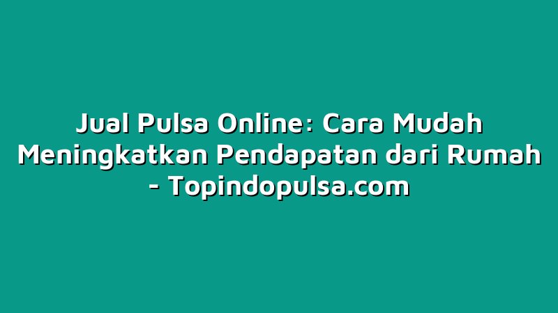 Topindopulsa.com, Singkawang – Halo, Sobat Topindoku! Gimana kabarnya hari ini? Semoga selalu dalam keadaan baik dan sehat ya. Wah, kali ini aku mau berbagi nih tentang cara mudah meningkatkan pendapatan dari rumah dengan menjual pulsa online. Sudah siap dengerin tips and triknya? Nah, jangan sampai ketinggalan info pentingnya ya, yuk simak artikel ini sampai akhir!