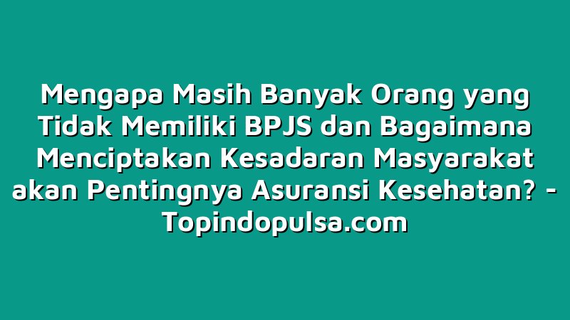 Topindopulsa.com, Singkawang – Hai Sobat Topindoku, apa kabar? Sudahkah kamu memiliki BPJS? Sayangnya, masih banyak orang yang belum memilikinya. Padahal, asuransi kesehatan ini sangat penting untuk melindungi diri dan keluarga dari risiko kesehatan yang tak terduga. Nah, kali ini kita akan bahas bagaimana cara menciptakan kesadaran masyarakat tentang pentingnya BPJS. Yuk, baca artikel ini sampai selesai ya!