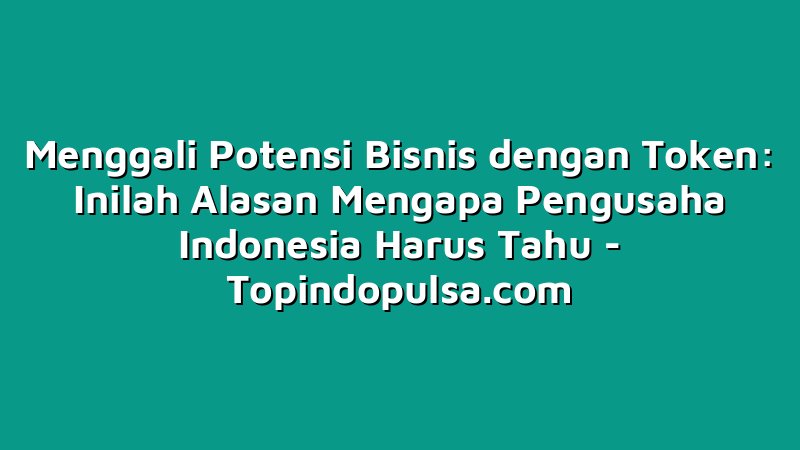 Topindopulsa.com, Singkawang – Halo Sobat Topindoku, apakah kamu pernah mendengar tentang token? Sebuah teknologi baru yang dapat mempermudah transaksi bisnis secara online. Bagi kamu yang ingin mengembangkan usaha, mengenal token bisa menjadi langkah tepat untuk menggali potensi bisnis yang lebih besar. Yuk, simak artikel ini sampai akhir untuk mengetahui alasan mengapa pengusaha Indonesia harus tahu tentang token!