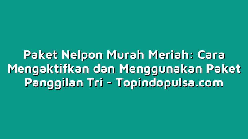 Topindopulsa.com, Singkawang – Halo Sobat Topindoku, kali ini kita akan bahas tentang Paket Nelpon Murah Meriah dari Tri. Kalau kamu sering menggunakan layanan panggilan Tri, pastinya tahu dong bahwa Tri menyediakan paket nelpon yang super murah dan hemat. Nah, di artikel ini, kita akan membahas cara mengaktifkan dan menggunakan Paket Panggilan Tri dengan mudah. Jangan sampai ketinggalan ya, baca sampai akhir!