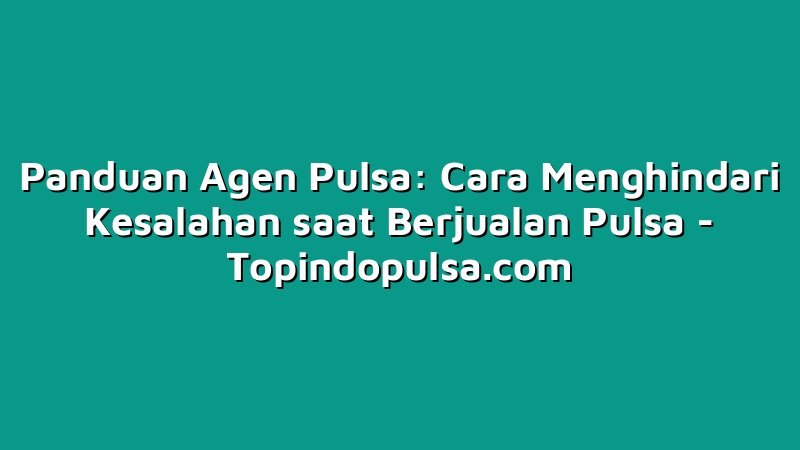 Menjadi agen pulsa adalah sebuah bisnis yang menjanjikan di era digital saat ini. Namun, seperti bisnis lainnya, berjualan pulsa juga memiliki risiko kesalahan yang dapat merugikan agen pulsa itu sendiri. Dengan mengikuti panduan yang telah disebutkan di atas, agen pulsa dapat menghindari kesalahan saat berjualan pulsa dan meningkatkan kesuksesan dalam bisnis ini.