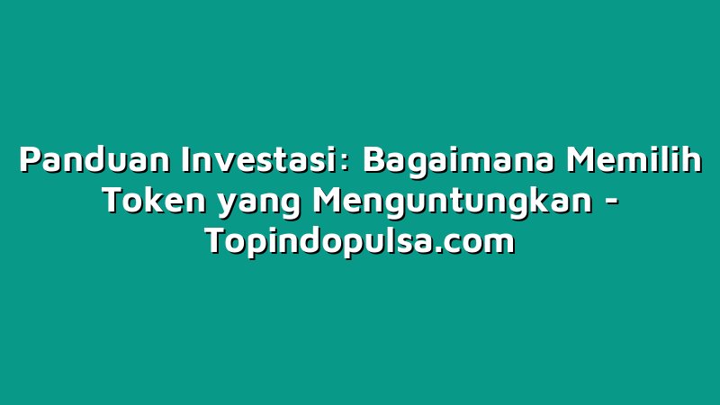 Panduan Investasi: Bagaimana Memilih Token yang Menguntungkan