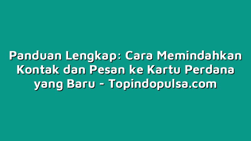 Panduan Lengkap: Cara Memindahkan Kontak dan Pesan ke Kartu Perdana yang Baru