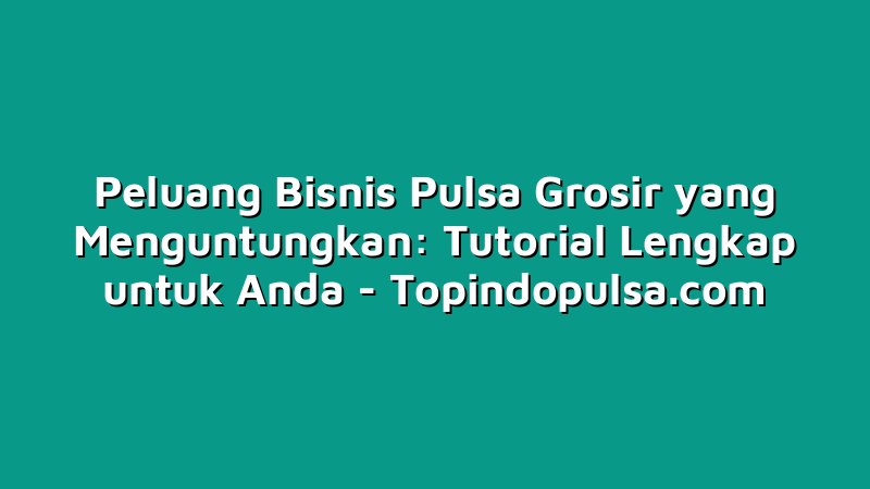 Topindopulsa.com, Singkawang – Halo Sobat Topindoku! Bagaimana kabarnya hari ini? Semoga selalu sehat dan bahagia ya. Pada kesempatan kali ini, kami ingin membagikan informasi terkait peluang bisnis pulsa grosir yang sangat menguntungkan. Bagi Anda yang sedang mencari peluang bisnis yang menjanjikan, artikel ini wajib dibaca sampai akhir. Yuk, simak tutorial lengkapnya bersama kami!