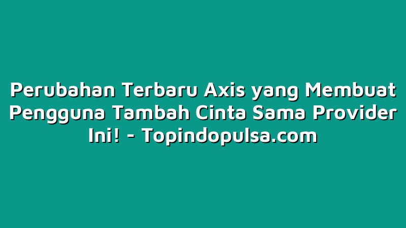 Topindopulsa.com, Singkawang – Hai Sobat Topindoku! Sudah tahu belum tentang perubahan terbaru Axis yang bikin penggunanya makin cinta sama provider ini? Kalau belum, jangan sampai ketinggalan info yang kece banget ini ya! Dijamin bakal bikin kamu makin setia sama Axis. Yuk, simak artikel ini sampai habis!