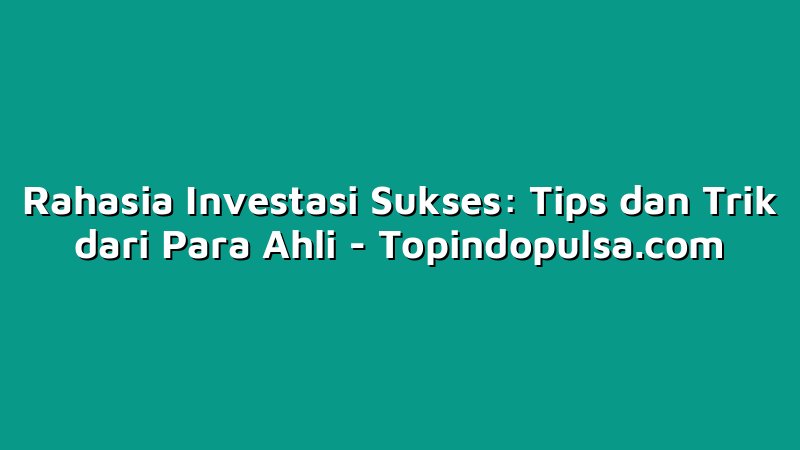 Topindopulsa.com, Singkawang – Halo Sobat Topindoku! Bagaimana kabar kalian hari ini? Kali ini kita akan membahas topik yang sangat menarik yaitu Rahasia Investasi Sukses: Tips dan Trik dari Para Ahli. Investasi memang menjadi salah satu cara untuk menambah pundi-pundi kekayaan kita. Namun, bagaimana caranya agar investasi kita sukses? Yuk, simak artikel ini sampai selesai agar kalian dapat mengetahui tips dan trik dari para ahli dalam berinvestasi. Selamat membaca!