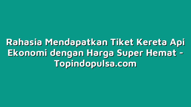 Topindopulsa.com, Singkawang – Halo sobat Topindoku! Kalau kamu demen traveling dengan kereta api, pasti tahu kan betapa pentingnya tiket kereta api yang murah meriah? Nah, kali ini kita akan membahas rahasia mendapatkan tiket kereta api ekonomi dengan harga super hemat yang mungkin belum banyak kamu ketahui. Yuk, simak artikel ini sampai habis!