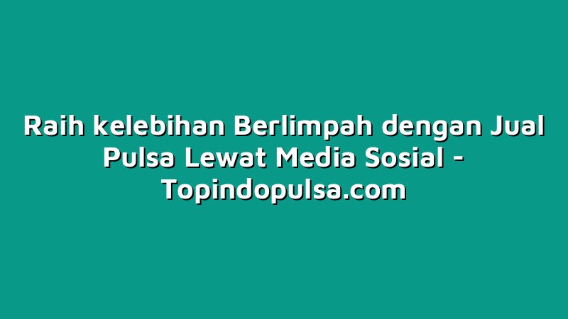 Topindopulsa.com, Singkawang – Hai Sobat Topindoku! Siapa di antara kalian yang demen main media sosial? Pasti banyak ya! Nah, kali ini aku mau kasih tahu nih, cara mendapatkan kelebihan berlimpah dengan jual pulsa lewat media sosial. Seru banget kan? Yuk, simak artikel ini sampai habis biar kamu nggak ketinggalan!