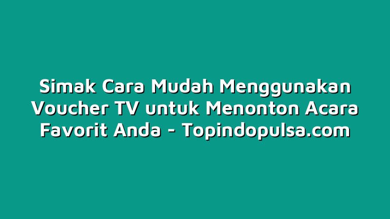 Topindopulsa.com, Singkawang – Hai Sobat Topindoku! Bagaimana kabar kalian? Semoga semuanya baik-baik saja ya. Pada kesempatan kali ini, kita akan bahas tentang cara mudah menggunakan voucher TV untuk menonton acara favorit kita. Nah, pasti kalian penasaran kan gimana caranya? Yuk, simak artikel ini sampai akhir ya!