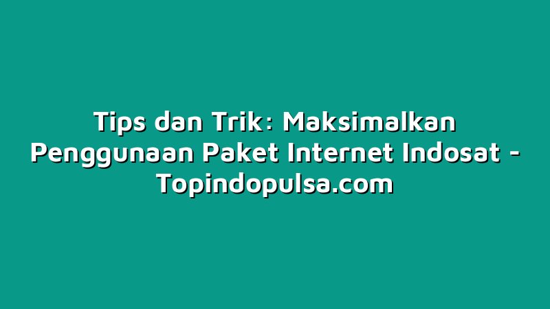 Topindopulsa.com, Singkawang – Hai Sobat Topindoku! Bagaimana kabarnya? Kali ini kita akan membahas tips dan trik yang bisa membantu Sobat Topindoku untuk memaksimalkan penggunaan paket internet Indosat. Yuk, jangan sampai ketinggalan untuk membaca artikel ini sampai selesai ya!