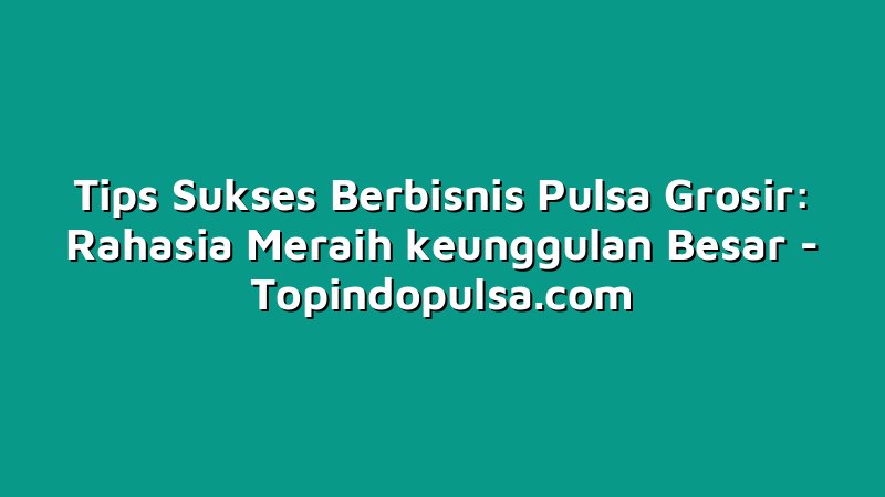 Bisnis pulsa grosir adalah bisnis yang menjanjikan jika Anda menerapkan tips sukses berbisnis pulsa grosir yang tepat. Dalam menggerakkan bisnis pulsa grosir, Anda perlu mencari distributor pulsa terpercaya, kenali pasar yang ingin Anda tuju, tawarkan harga yang kompetitif, gandeng agen pulsa untuk memperluas pasar, promosikan bisnis pulsa grosir Anda, jalin hubungan yang baik dengan pelanggan, gunakan teknologi untuk meningkatkan efisiensi, belajar dari pengalaman dan kesalahan, menjaga kualitas produk dan pelayanan, perhatikan persaingan, dan jangan mudah puas dengan keunggulan yang sudah dicapai.