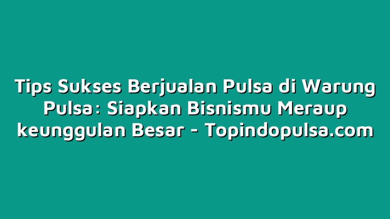 Di era digital seperti saat ini, kebutuhan akan pulsa semakin meningkat. Berjualan pulsa di warung pulsa bisa menjadi bisnis yang menguntungkan jika dilakukan dengan benar. Beberapa tips sukses berjualan pulsa di warung pulsa adalah melakukan perencanaan yang matang, menentukan harga jual yang tepat, melakukan promosi, menjalin komunikasi yang baik dengan pelanggan, melakukan inovasi, dan menjaga keamanan serta stok pulsa. Dengan menggerakkan semua tips di atas, diharapkan bisnis jual pulsa di warung pulsa bisa sukses dan meraup keunggulan besar.