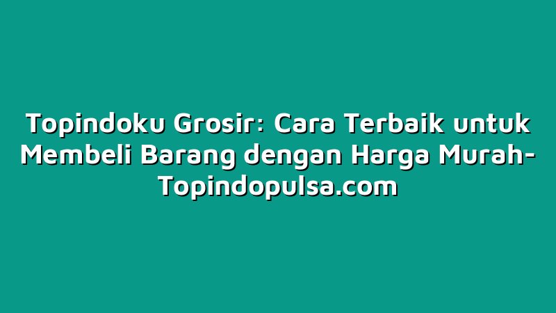 Topindoku Grosir: Cara Terbaik untuk Membeli Barang dengan Harga Murah