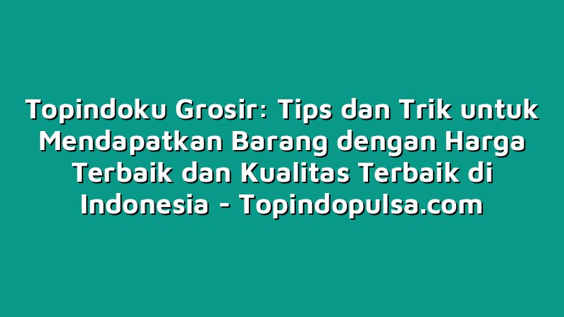 Topindoku Grosir: Tips dan Trik untuk Mendapatkan Barang dengan Harga Terbaik dan Kualitas Terbaik di Indonesia