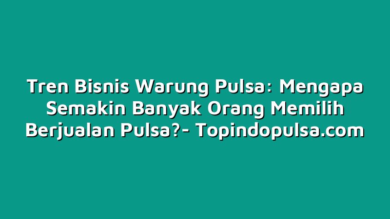 Topindopulsa.com, Singkawang – Hai Sobat Topindoku, gimana kabarnya? Kalian pasti tau kan kalau sekarang lagi ngetren bisnis warung pulsa. Bener banget nih, semakin banyak orang yang memilih berjualan pulsa sebagai sumber penghasilan. Nah, kira-kira kenapa ya? Kali ini kita bakal bahas soal itu semua, jadi pastikan kamu baca sampai habis ya!