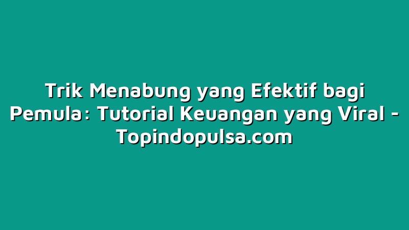 Topindopulsa.com, Singkawang – Halo Sobat Topindoku, kali ini kita akan membahas tentang trik menabung yang efektif bagi pemula. Tutorial keuangan yang viral ini akan disajikan dalam bahasa Indonesia yang santai agar lebih mudah dipahami. Demi mencapai tujuan keuangan yang lebih baik, yuk simak artikel ini sampai akhir!