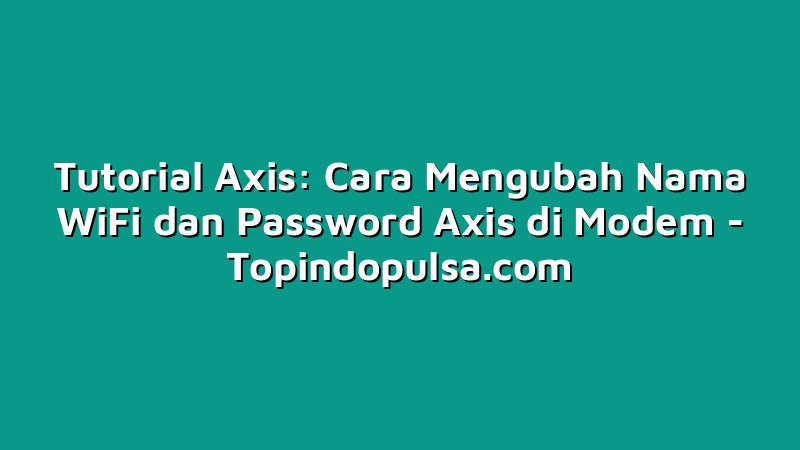 Apakah Anda pengguna Axis dan ingin mengubah nama WiFi dan password di modem? Jika iya, Anda berada di tempat yang tepat. Artikel ini akan memberikan tutorial lengkap tentang cara mengubah nama WiFi dan password Axis di modem.
