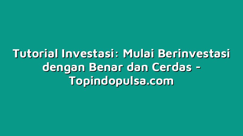 Topindopulsa.com, Singkawang – Halo Sobat Topindoku! Apa kabar? Semoga selalu sehat dan bahagia ya. Kali ini, kita akan bahas tentang sesuatu yang pastinya sangat menarik buat kamu yang ingin mulai berinvestasi. Yup, benar sekali, kita akan membahas tentang Tutorial Investasi: Mulai Berinvestasi dengan Benar dan Cerdas. Jangan sampai kelewatan ya, karena artikel ini bakal memberikan banyak informasi penting buat kamu. Yuk, langsung saja kita mulai membaca sampai akhir!