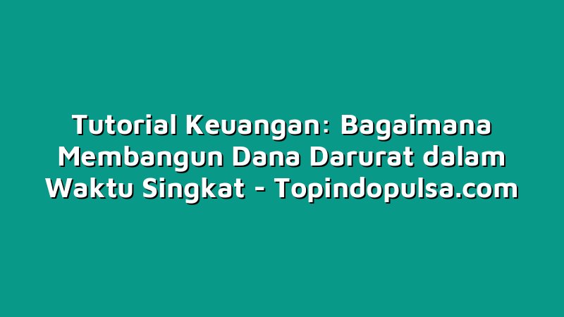 Membangun dana darurat memang tidak mudah, namun hal ini sangat penting untuk melindungi keuangan Anda dari situasi yang tidak terduga. Dengan mengikuti tutorial keuangan di atas, Anda bisa membangun dana darurat dalam waktu singkat dan melindungi keuangan Anda dari situasi yang tidak terduga. Selamat mencoba!