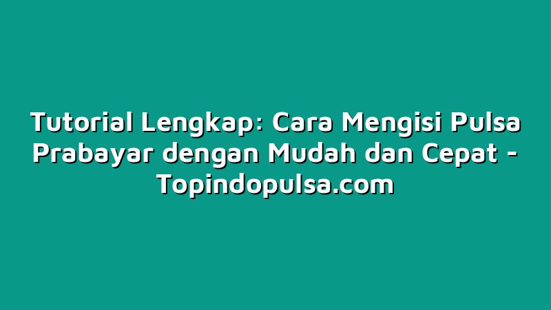 Tutorial Lengkap: Cara Mengisi Pulsa Prabayar dengan Mudah dan Cepat
